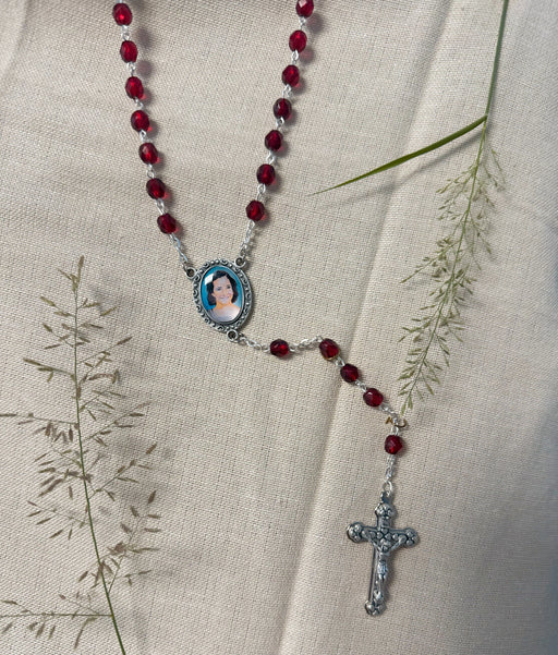 This beautiful Charlene Richard Rosary features garnet-colored glass beads, in honor of Charlene's birth month of January offering a rich, elegant ...